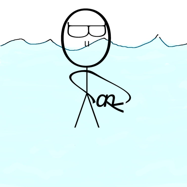 I used letters from the word “Buoyancy” in different size and font to draw a big-head guy floating on the water, and he’s playing around with a little fish