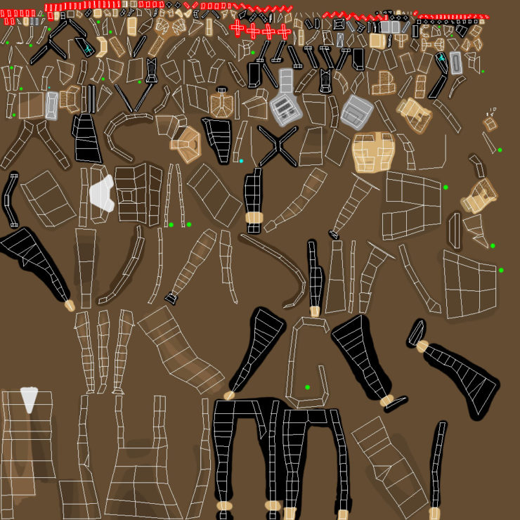 Here are all of the UV’s that took a terribly long time to locate, match up, and draw in. However, I am happy with how the figure looks finish!