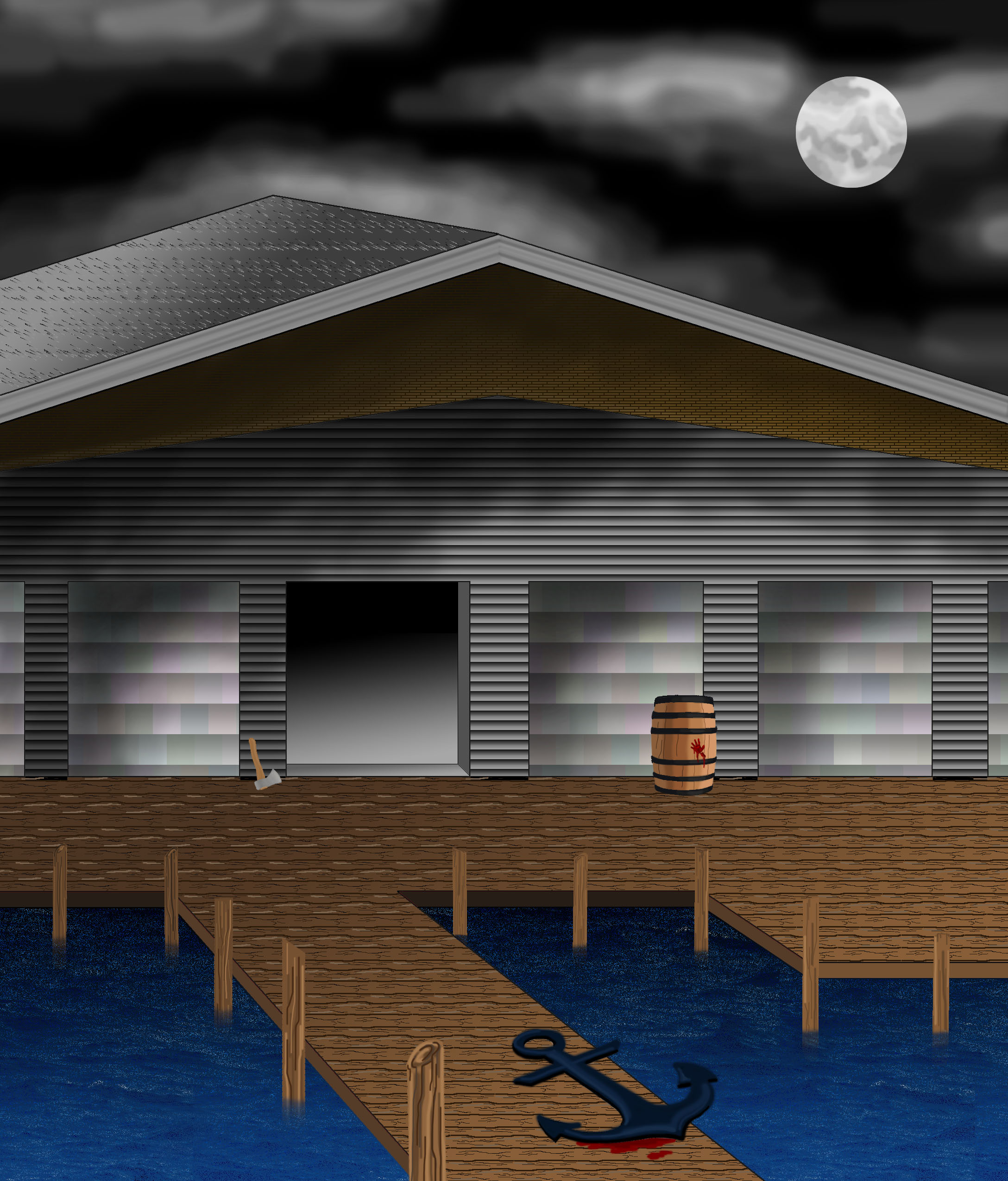 As Kahn and his crew moved into the docks, they could see the body of a man laying across a massive anchor. The man looked to have been cut and there was blood on the planks of the docks. Kahn reached down to check the man’s pulse but all he felt was the shock of an ice cold neck of a dead man. Ty, one of Kahn’s crew mates, was convinced that the man had gotten himself tangled in the deadly chains of the twisted anchor while unraveling it, which was a probable suspicion. However, Kahn believed that this could not explain the slash wounds across his chest. Kahn glaced across the docks looking for anything to help them with the investigation. Suddenly he noticed a handprint on a barrel that was up against the overhead doors of the warehouse. Kahn strolled over to the barrel and noticed that the print had been created in blood.
