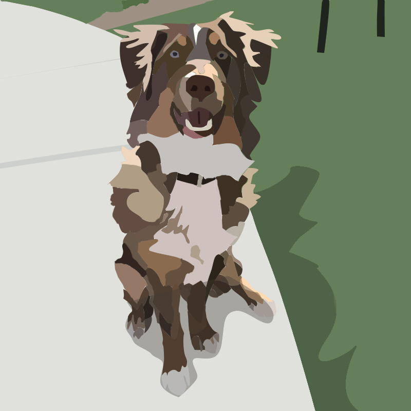 This is my nephew. His name is Tuna and he’s a seven-month-old Australian Shepherd puppy. He’s become an integral part of our family, bringing our family even closer together, despite living in North Carolina. I used this picture my sister sent me while I was away on IQP for my reference. Being an Australian Shepherd, Tuna has a long fur. This proved quite the challenge when it came to deciding which colours to use for which sections, as more than one could be applied.