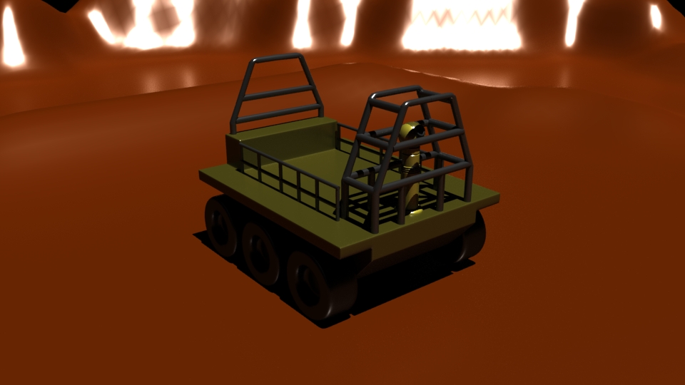 For my robot, I drew inspiration from the Lockheed Martin robot mule, which can autonomously follow a patrolling platoon while carrying their combined gear. The biggest challenge I faced was trying to bend the cylinders so that they looked like they provided the same structural support the real pipes provide.