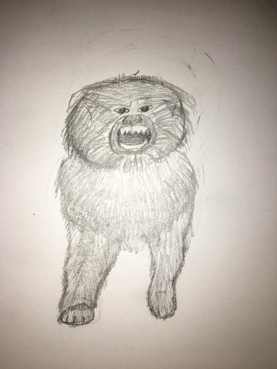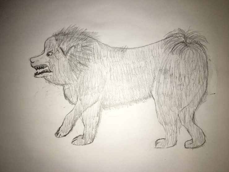After rereading the sign next to the busted cage, Detective Speurder realizes that this Storhund that escaped is a Tibetan Mastiff. He realized these dogs can grow to be bigger than men and look more lion than dog, and that’s without genetic mutation. He couldn’t imagine what it would look like now. Between whatever was in the syringe and the panicked state he assumed it would be in, Speurder knew that this not so “wittle doggo” would be highly aggressive upon seeing anyone, including himself.