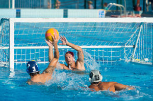 Oftentimes, in the middle of a particularly bad game in which goals are just constantly being scored against them, water polo goalies can feel like they don’t even exist in the cage.  For that reason, I decided to try to take the goalie out.  It was easier to take out the goalie’s arms and head when in front of the net or water behind it, but it was a challenge to adapt the movement of water both behind the goalie and coming off of the two arms.
