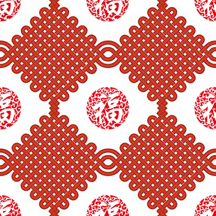 Comments: in the center is a woven Chinese knot we use to symbolize best wishes, combined with a paper cut “fortune” character. Both of which are commonly used for holidays. Images were cropped/selected so that adjacent tiles have seamless transitions.