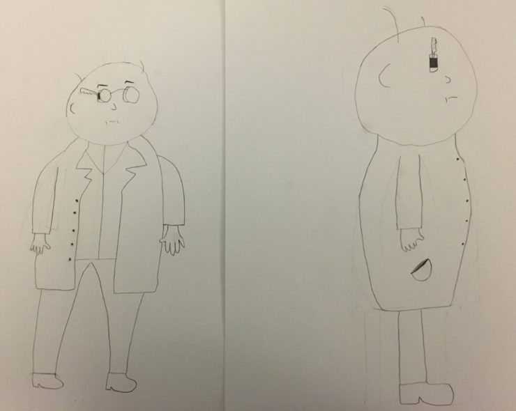 For my character, I decided to create a detective of sorts. I wanted to add some unique item to him to make him stand out from other detectives, so I decided to give him a special pair of glasses. They act as normal glasses, but the switch can also be pulled to change the lens to a sort of magnifying glass. I decided to make him a large, older fellow, because the reason why he combined his magnifying glass with his glasses is because he was tired of pulling out his magnifying glass and moving his glasses to look through it.