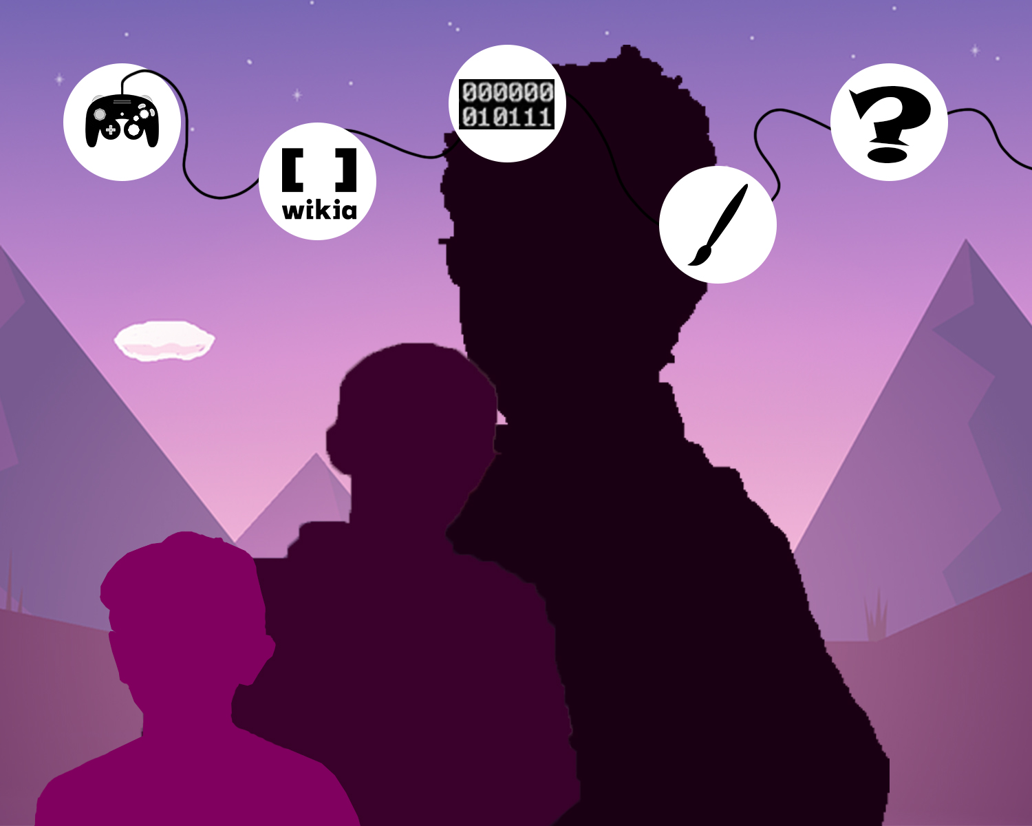 For my self portrait collage, I wanted to create a sort of timeline about the journey that I’ve had. My love for video games has lead me through many different activities and lead me to learn a variety of new skills, which is represented by the cord connecting all the circles together. Video games lead me to discovering Wikia, which helped me to think about games more critically. Wikia lead me to want to learn about coding games. Coding games then lead me to other fields in the game industry, such as art. It then leads to a question mark, meaning that, while I don’t know what I will be learning next, I am positive that it will further me along my path in the field of video games. I wanted to show my progression through all this because it is something that I hold dear. I’ve put an absurd amount of time into these activities to further my knowledge of video games, so I hold them in high importance in defining who I have become. I wanted to show this timeline approach rather than simply putting in a lot of video game pictures because my appreciation for video games goes beyond just playing them.