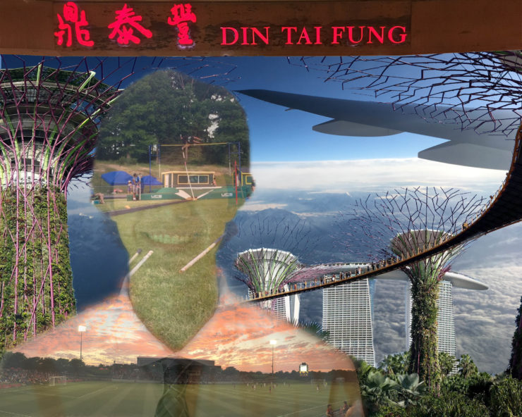 My self portrait collage is based off of one of my senior pictures. All the photos in my college are my personal photos. In the background there are two photos. These photos represent that I love traveling and flying around the world. One photo is from the Gardens by the Bay in Singapore and the other is from a plane while flying over Alaska. Then my body is made up of two of the most important things to me and real make me who I am. Thats consists of a picture of a soccer game and me pole vaulting. I purposely kept my body faintly in the background to try to show that this is what is important to me. I put all of this in a window of my favorite restaurant from Taiwan to try to represent this as a window into my life.