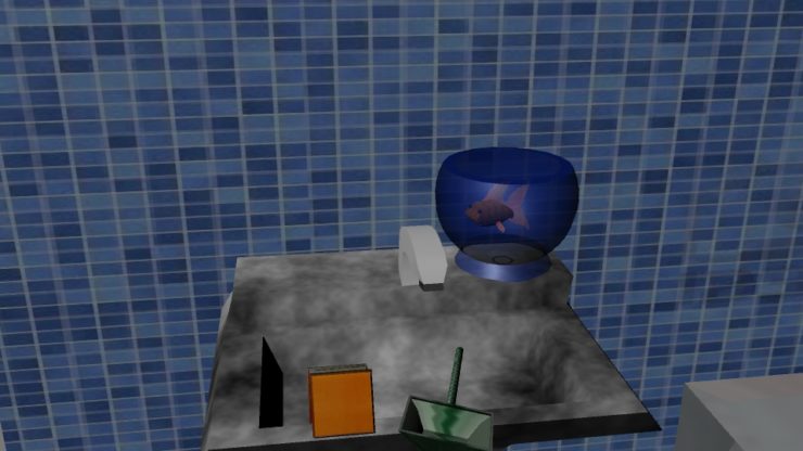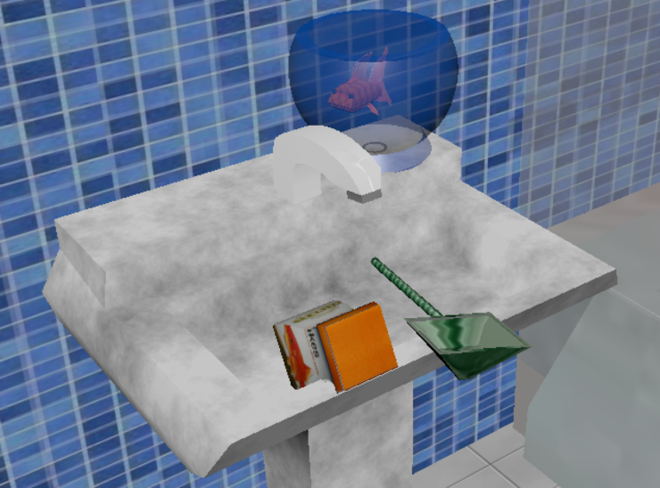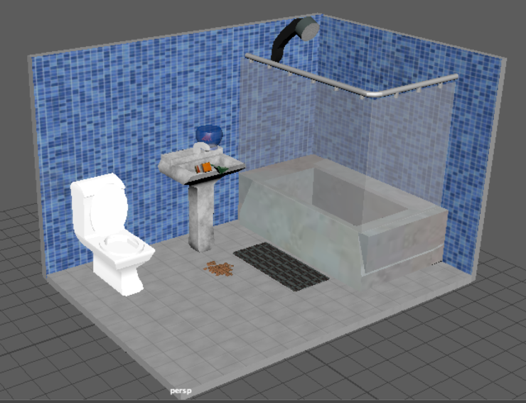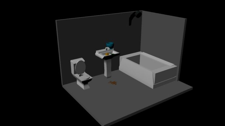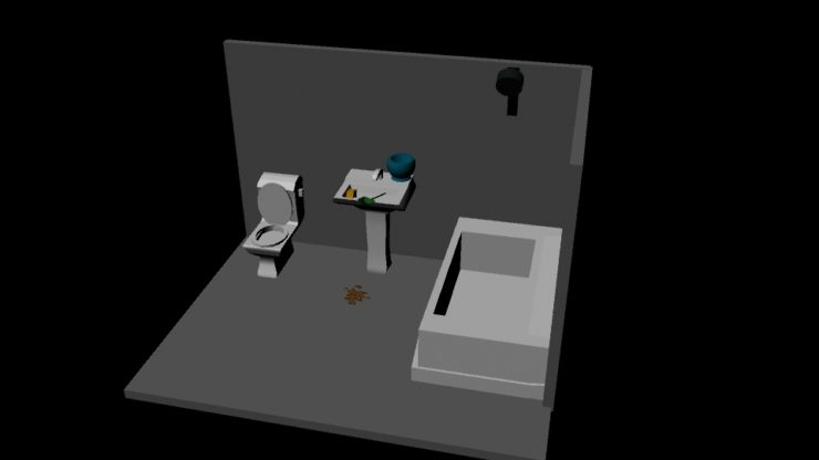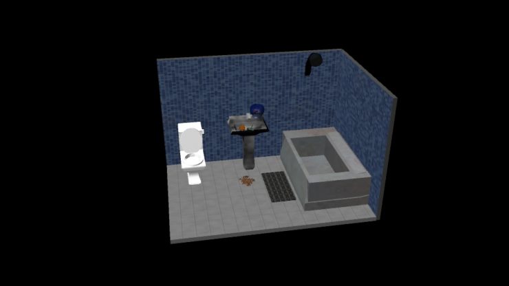 Here is the Bathroom scene with all of the main mystery objects involved in the investigation.