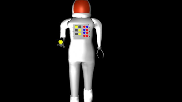 My hand modeling skills were atrocious so the astronaut now has robot claw hand things. Been toying around with the light so hopefully he’ll have a working flashlight in the final scene.