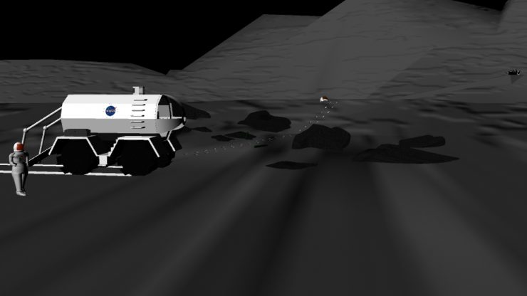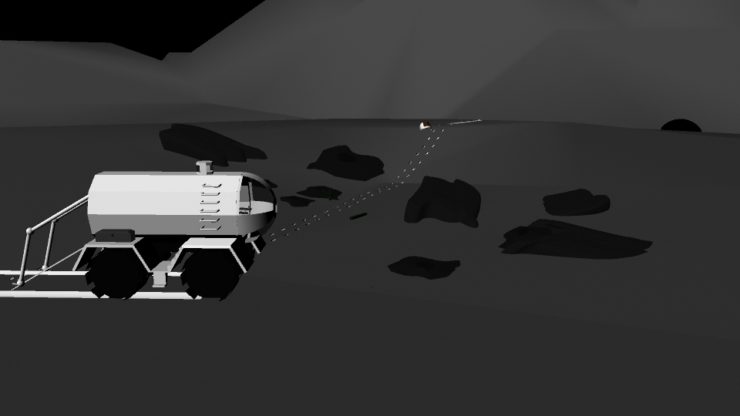 The jpg version of the render keeps coming out much darker than what it actually is. It’s hard to see, but the rocks and wheels have a texture to them. The rover and the astronaut both have textures on their models but it’s really hard to see because of the white color. There’s also a NASA logo on the side of the rover now.