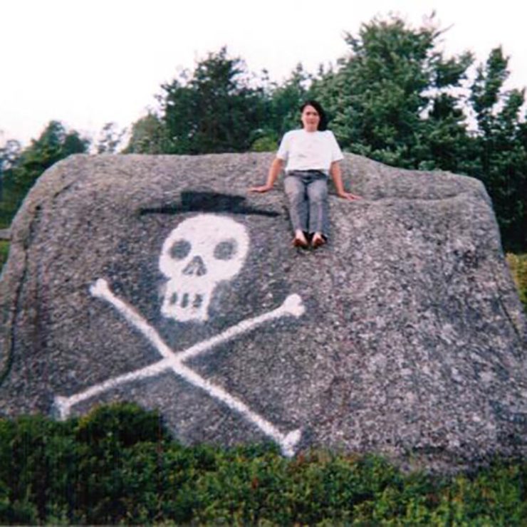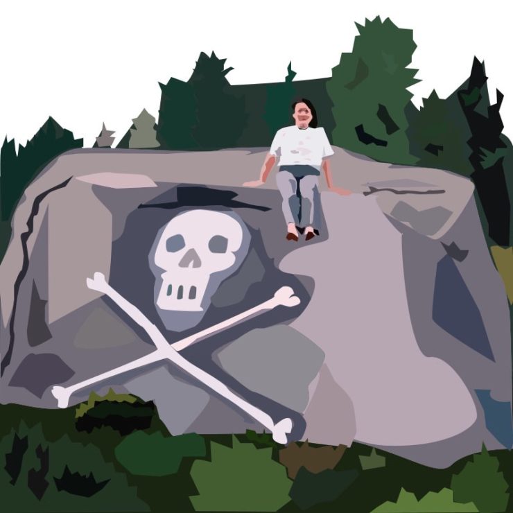 I decided to use a picture of skull rock, which is located by the pond in Maine my family has been going to for generations. The rock itself is part of a family tradition. The woman in the picture is my great aunt.