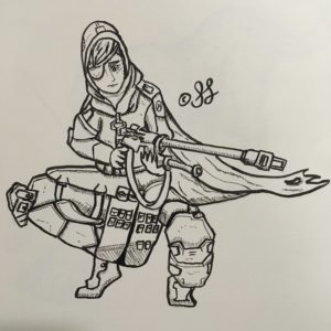 This ink drawing was inspired from the game Overwatch. The character’s name is Ana, and I drew it while preparing for Inktober and am rather proud of it.