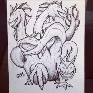 This drawing was inspired by an Inktober prompt, which is an art challenge that happens during October. Every day there is a different prompt – this particular hydra was inspired from the world “split.”