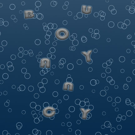 For buoyancy, I did a gradient background of dark water. Then I made bubble letters using the blending options on the words to make to appear to be more bubble and floating. Finally, I inserted a pattern of random circles to show bubbles floating up with I think made a pretty good affect.