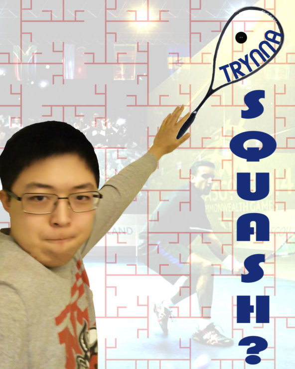 I had a few challenged with this creating this. Firstly, the picture of me was extremely pixilated and the background color blended in well with my skin and shirt making it very difficult to crop out. Then the image I have in the background of the squash player going to hit the ball was originally going to replace my shirt, but it looked really weird after I had finished it so I got rid of it and made it the background instead. I also filled in the background with the red lines of a squash court. It made for a very interesting pattern which I liked. Then I added a squash racquet which I took the strings out of because they were very pixelated. Also, there is a squash ball inside the racquet. Finally, I added the words, “trynna squash?” because it’s what we always say when we’re getting ready to go play.