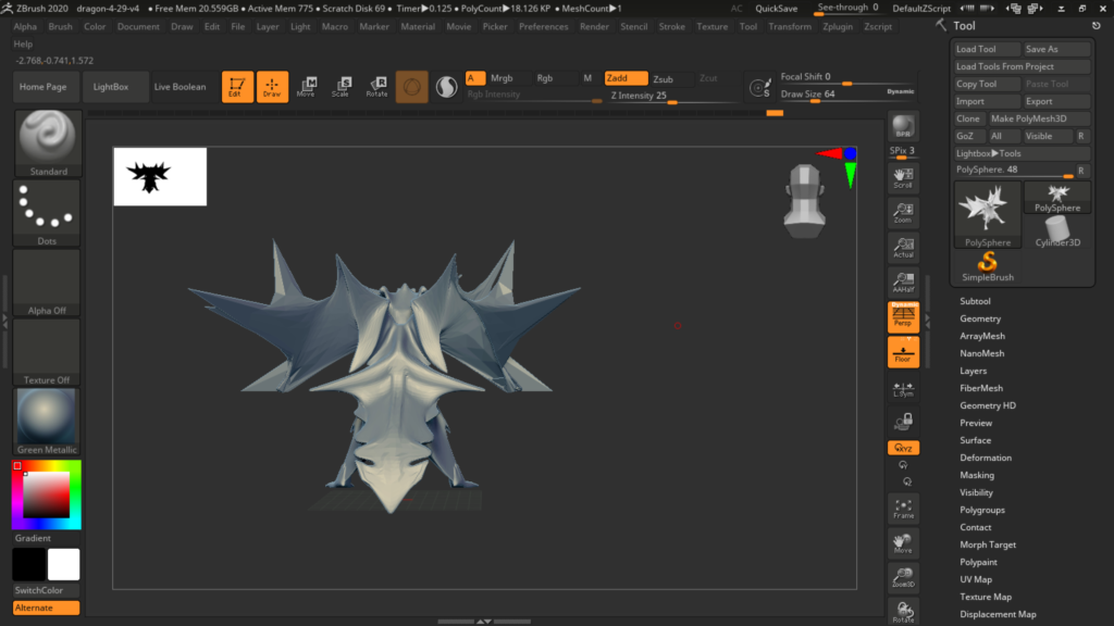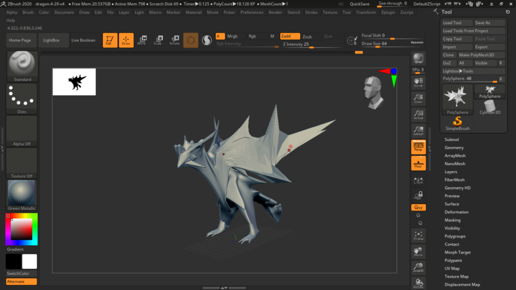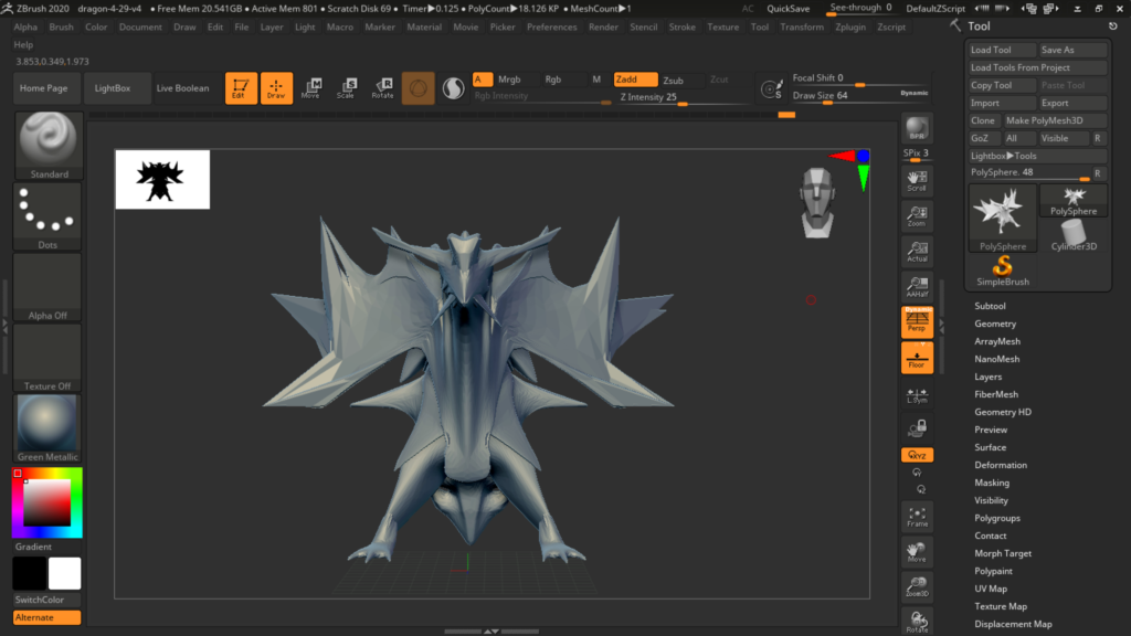 I’ve played a lot of Dungeons and Dragons and really enjoy fantasy as a genre, so I decided to create a model of a dragon to be used as a tabletop figure, either for playing D&D or as a marker in a board game.