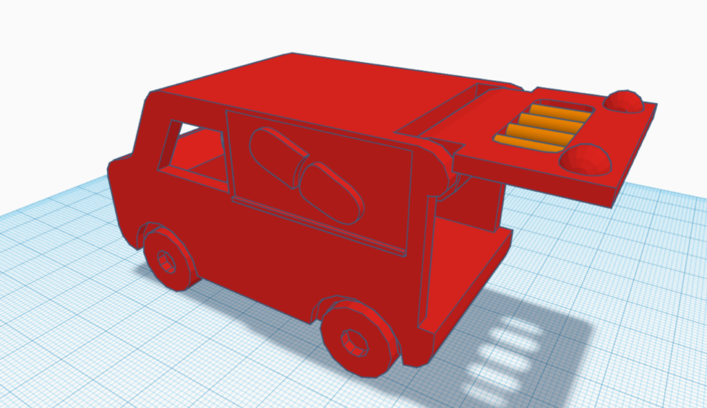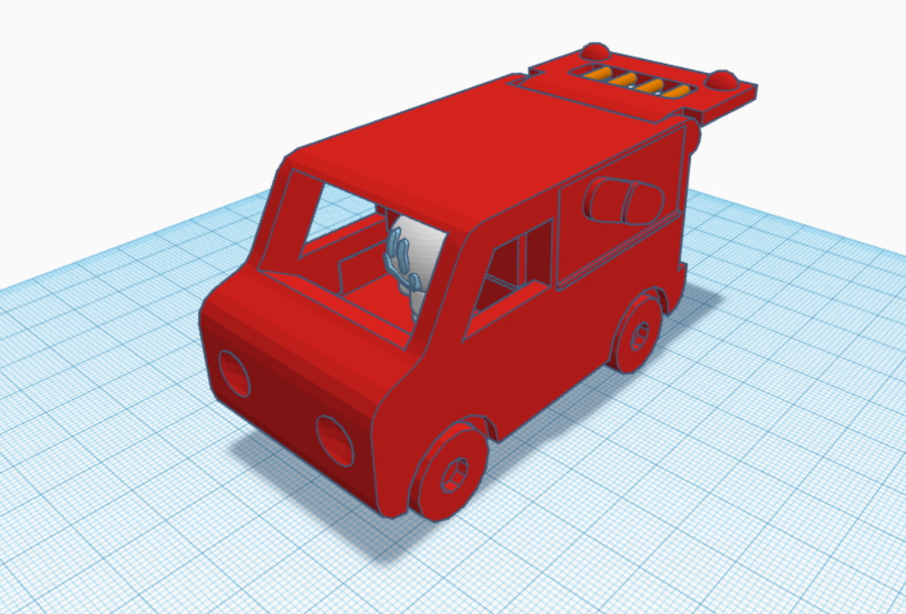 I love functional pieces, and I think taking my meds is extremely boring to the point where I don’t even want to muster up the energy to open a bottle. I did think about a pez dispenser like Shane, and shoutout to him for posting his stuff because it helped me stop second guessing my own project and post it. I used to love playing with anything with small moving parts. The little model cars always made me so happy if I could find one that had a door or trunk that opened. I found a model truck I liked on Thingiverse (https://www.thingiverse.com/thing:891393) and turned it into a sort of food truck for medication. Having a tiny delivery truck would give me a touch of motivation to take my meds everyday, and I think that an important part of staying happy is to enjoy the small things, this will only help with that. I added in a little me to drive the truck, but there’s no actual steering wheel because I feel like I don’t have much control over my medication, there’s nothing I can do to improve its chances of having the desired effects. The bars on the back are to keep the medication from falling out the back window but also because sometimes the idea of needing to take something everyday is a bit stifling. I put a menu on the truck because my meds are oftentimes changing so much I wanted the truck to be customizable. I’m thinking of adding a little strip of something that allows for a dry erase marker to be used on it.