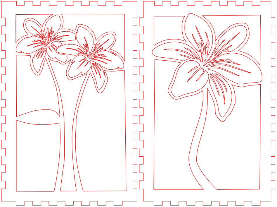 I am cutting pieces out of the wood so that the flower parts will be cut out to allow the light to shine through, there shouldn’t be any floating pieces, but I am simplifying the design of the flowers a bit still.