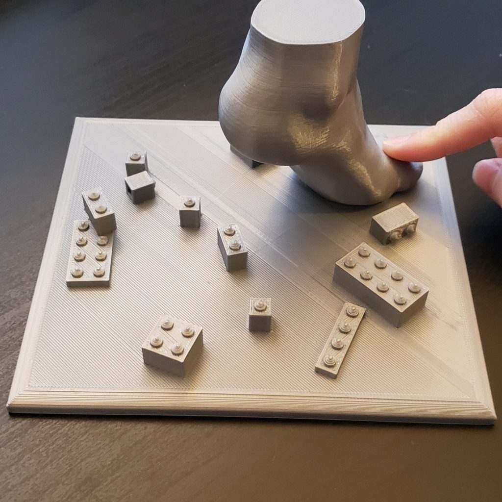 Combined Prints: It came out pretty much how I imagined, and the base of the foot fits snuggly in its indent on the platform. I’m excited to do the finishing touches next!
