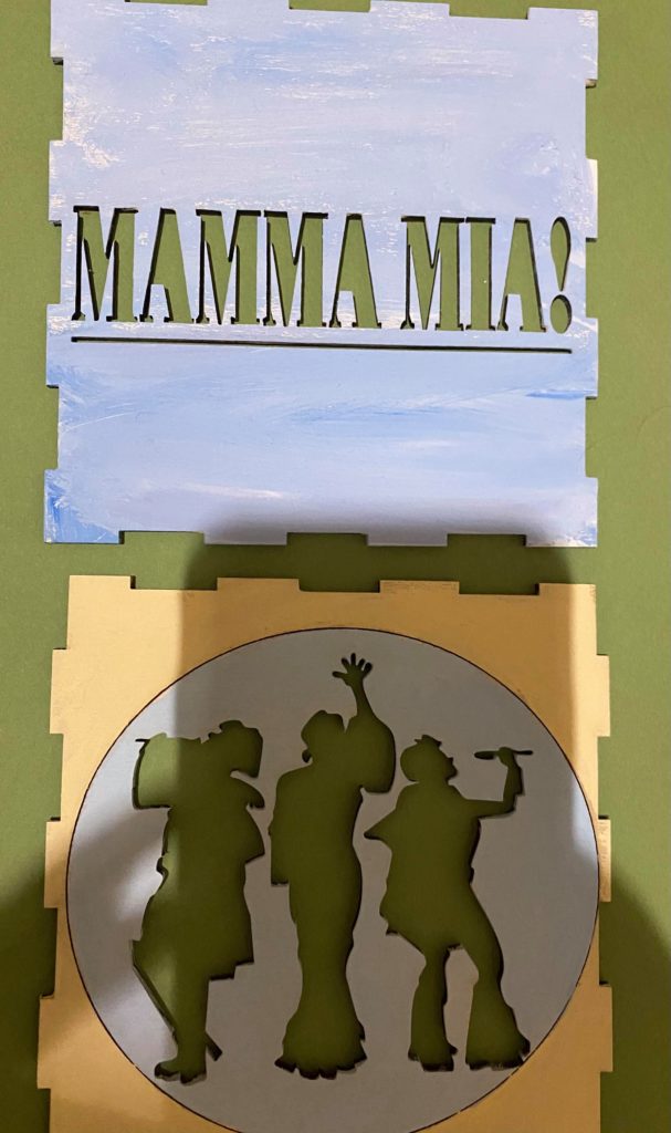 Update 5: I added another set of cut outs of Donna and the Dynamos to be used on the platform. I think I’m going to start putting together the platform with the pieces so it’s not rushed. Sadly I think I’m going to have to recut the box because while sanding the sides it seems like the pieces might be close to breaking just because of how close some of the cuts were to the edge. I’m going to keep trying because I don’t want to lose how I painted some of the sides, but I have a laser cutting appointment scheduled just in case.