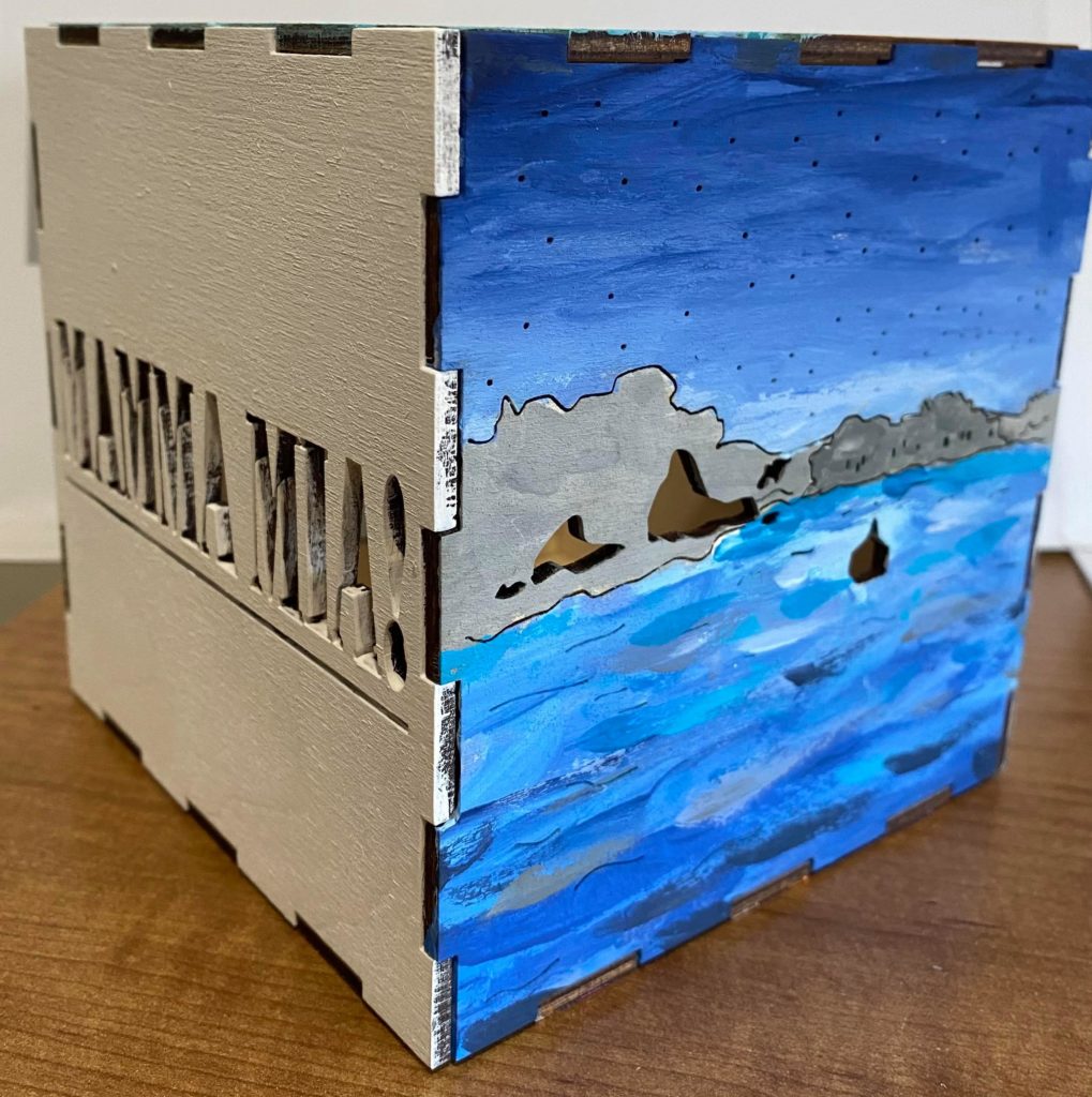 I notice the detail you put in while painting your piece. I especially like the ocean landscape. Do plan on cutting a hole on one side for the cord?