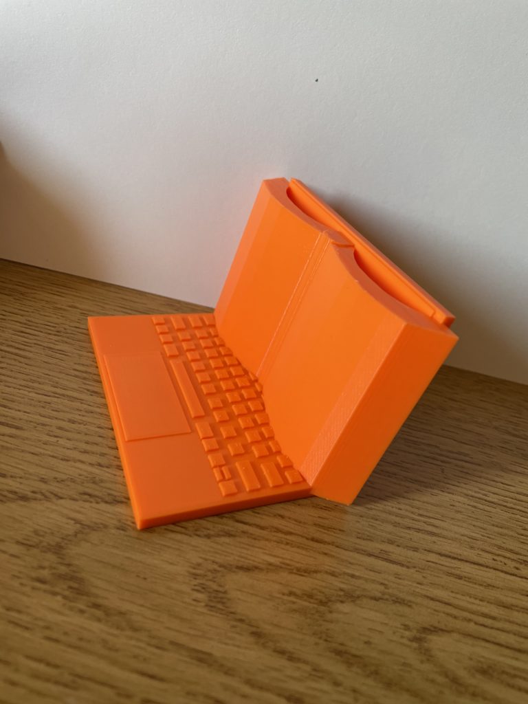 Altered Toys Project: This project was inspired by the countless hours and hundreds of books I read when I was a child in contrast to how much time I now spend behind the screen of my laptop. I used tinkercad for the design: I took and modified a premade open book and then made the laptop from scratch. It came out even cuter than I anticipated and an unexpected function of this is that it is a perfect phone stand (ik a bit ironic that it holds another screen I spend my life on).