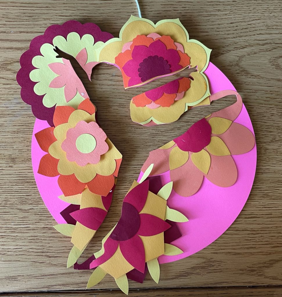 Layers Project: This project was inspired by artists we looked at in class that had the final design only appear when all the layers were alligned ‘just right’. I took a photo of myself in a dance pose, then drew all the flower layers and cut out the silhouette of myself. The end result was all the flowers building upon and around eachother to reveal the entire silhouette. I am very pleased with how this came out.
