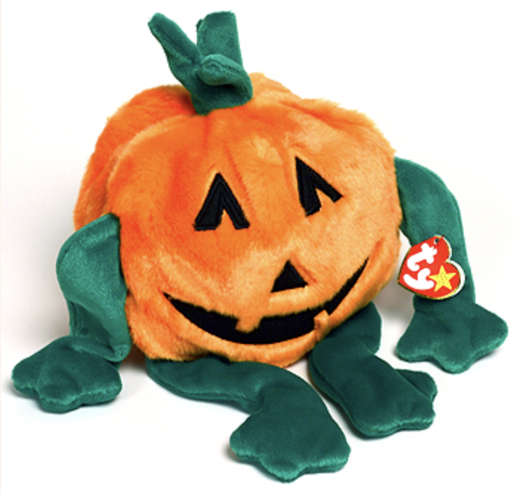 Thinking about childhood toys I remembered this funny little beanie baby that I had gotten around Halloween.. All I remembered was calling him “Plumpkin the Pumpkin”
