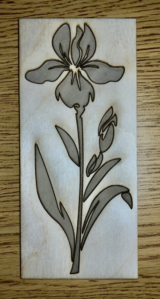 For your Iris flower, I noticed how you used a vector engrave for the outline and used a raster engrave for the inside. I think it really helps establish the form of the flower and gives it added emphasis.
