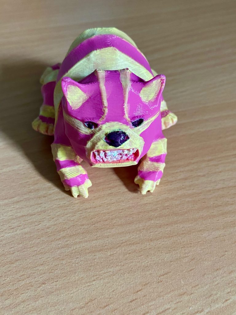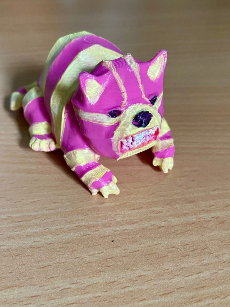 For this project, I took one of my oldest stuffed animals named Bagpuss and crossed him with the interesting character of the Bandersnatch from Alice in Wonderland. Creating the piece in ZBrush was my favourite part, especially when I got to see how my design translated into real-life. The only issue I would say I had was with the supports in the mouth – it was very difficult to get them out. In the end (although the teeth don’t look as I originally intended) I like the jagged look that ended up being created.