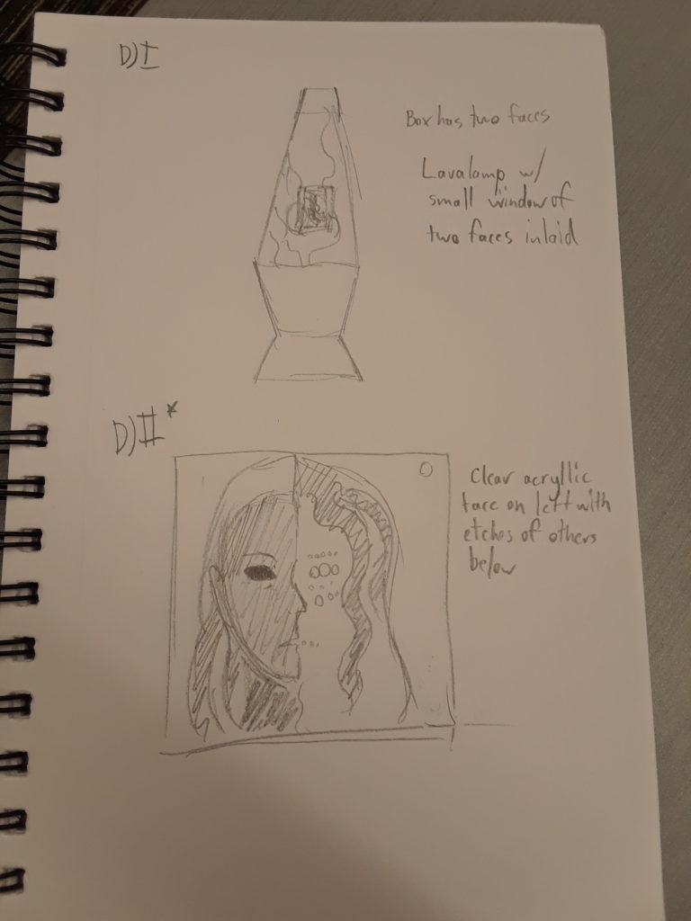 I’m still debating on whether or not to set in an LED since the whole model is going to be built with cloudy acrylic. If I do end up adding them in, the wires will be fed from the top of the head where the lights in the helmet are down through the astronaut’s feet into a base. I still want to keep an ethereal look and am slowly leaning toward scrapping using LEDs. I finished the first build of cardboard today and it might be physically impossible.