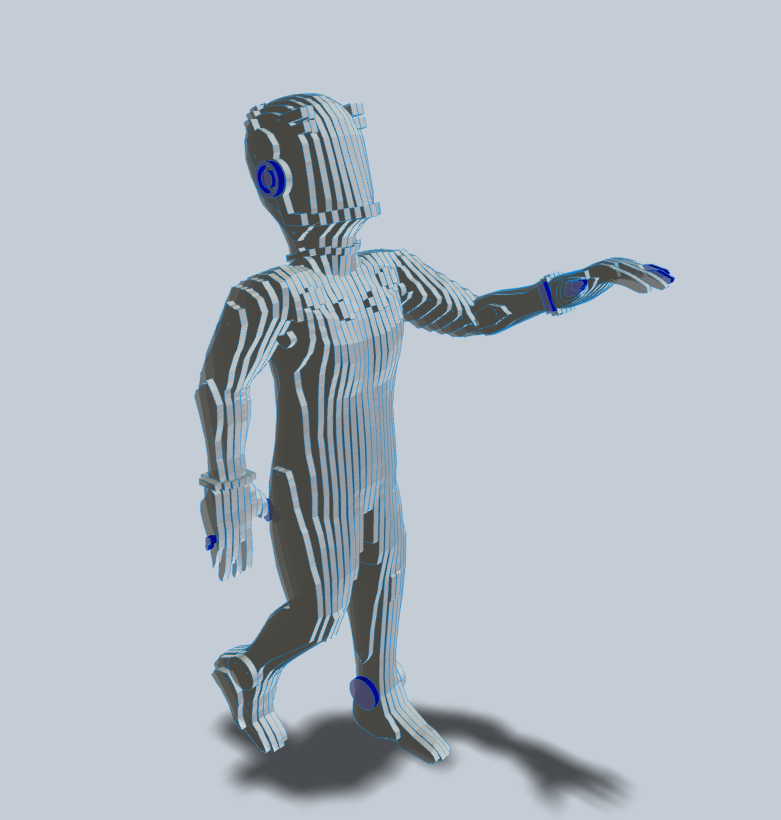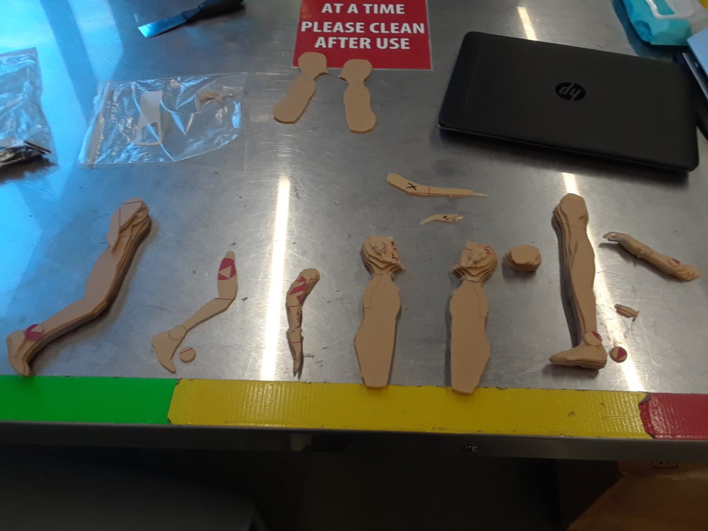I am blown away by the time your are putting into each aspect if this project so that it comes out just as planned. I am noticing many circular shapes located at joints, are these mechanisms to make the limbs of your figure move or are they apart of the astronaut suit’s details? In my opinion this project is really cool, I can’t wait to see it al come together, and I think a wave pattern under the figure would be a great way to make him the center of the project.
