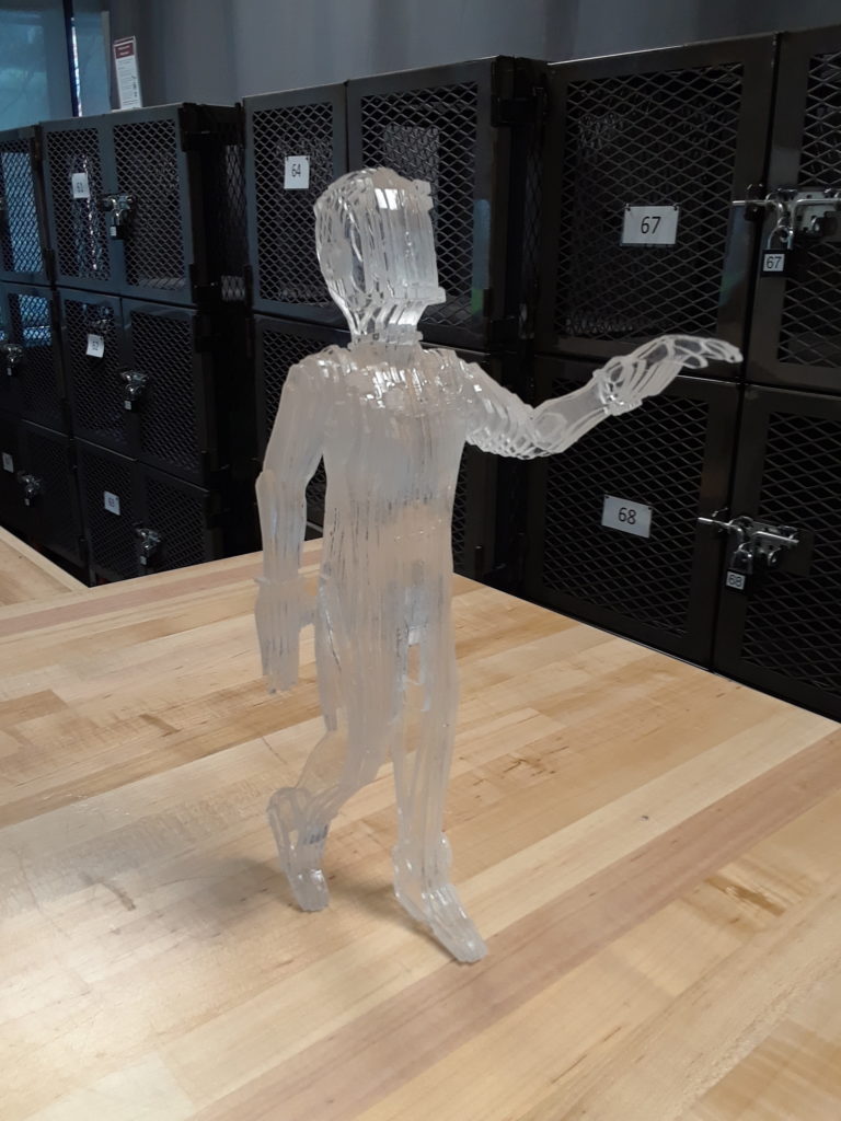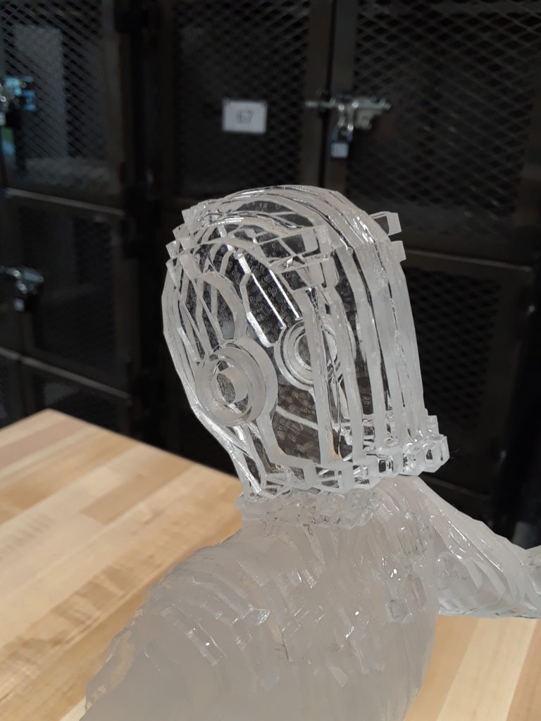 Hi Kat! I noticed the detail that you put into the fingers and the detailing on the head of the figure. I was wondering, what is the reasoning of making the piece using clear material? I’m really looking forward to what the final piece is going to look like!