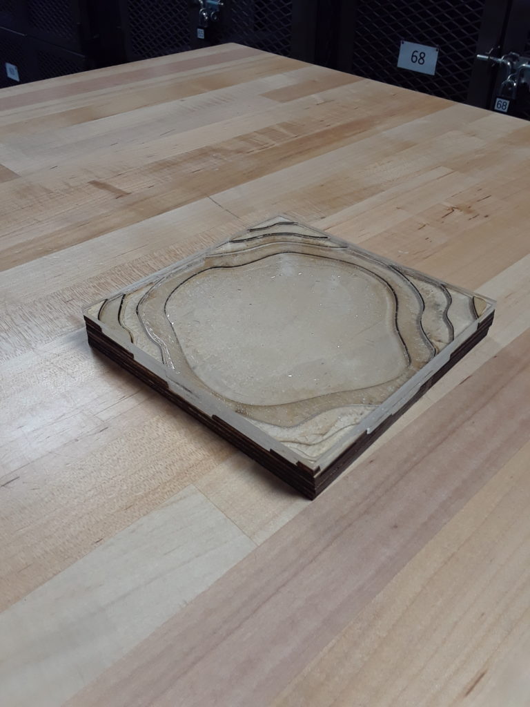 The project is completely finished! I ended up using clear Elmer’s glue to piece the layers together and scrapped the wave idea on the abyss plate. It took about 2 days for the whole gluing process, and I found that the glue didn’t stick to alcohol wipes, so while letting things set, I placed the pieces on alcohol wipes, while this did create a bit of an issue with air bubbles, or as I suspect, I think the piece turned out stunningly with the clear crystal look I was going for.