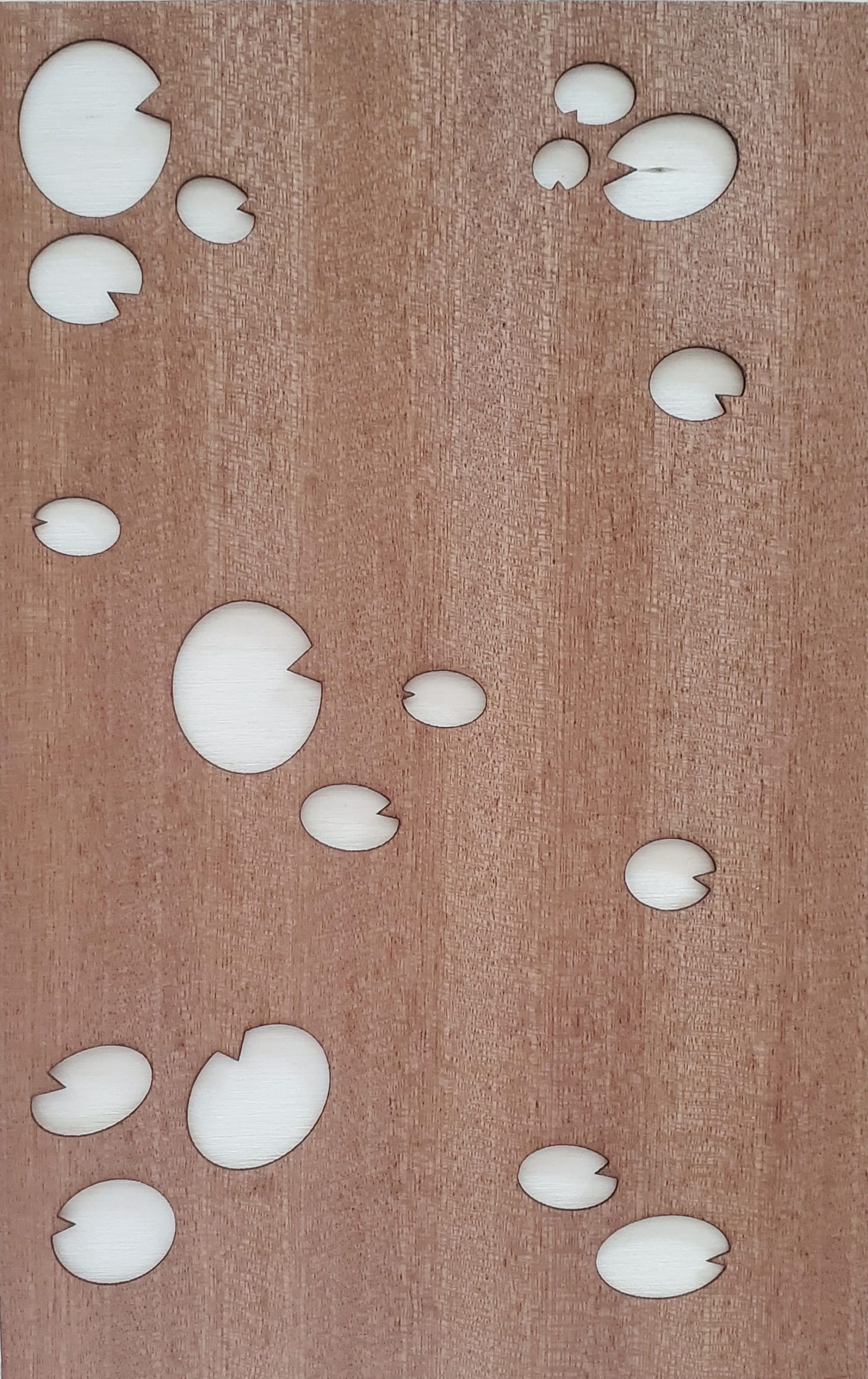 So I have hit a bump in the road for my layers design right now. I knew going in that the cutting process would be challenging because the wood veneers are really thin and because I have small pieces in my design. I went into the makerspace with the idea that my test cuts would not take too long, but I was very very wrong. I had a lot more to test than I initially realized.