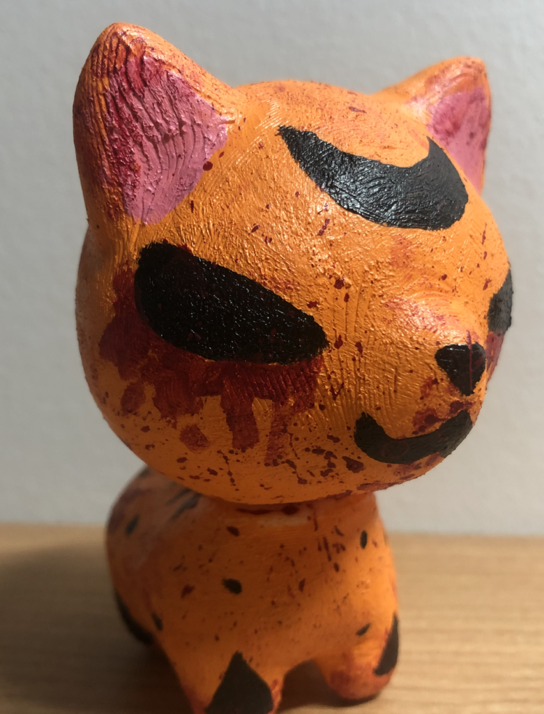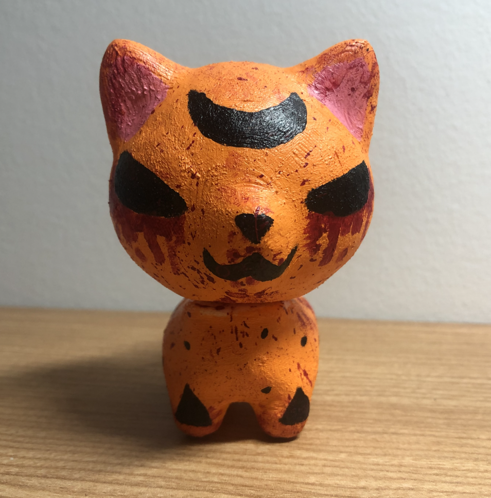 Jogging my memory back to childhood, Littlest Pet Shops were my absolute FAVORITE toy. I remember I always wished I could make my own and use my imagination to create my own Pet Shop design. For this project, I wanted to recreate the toy and give my inner child a chance to artistically customize it, but put on a grown up spin to it. I love horror films and wanted to turn this into a spooky horror cat. I decided to add painted scary attributes such as blacked out eyes, blood, and sharp details
