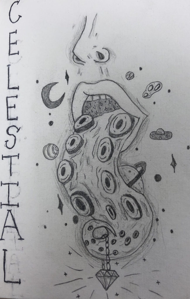 Hi! I want to give you quirky and colorful! I really love the details and imaginative “things” you drew, especially the octo-tongue! Also your rainbow makeup look is just so incredible! I saw it and immediately wished I could do something that sick with makeup!