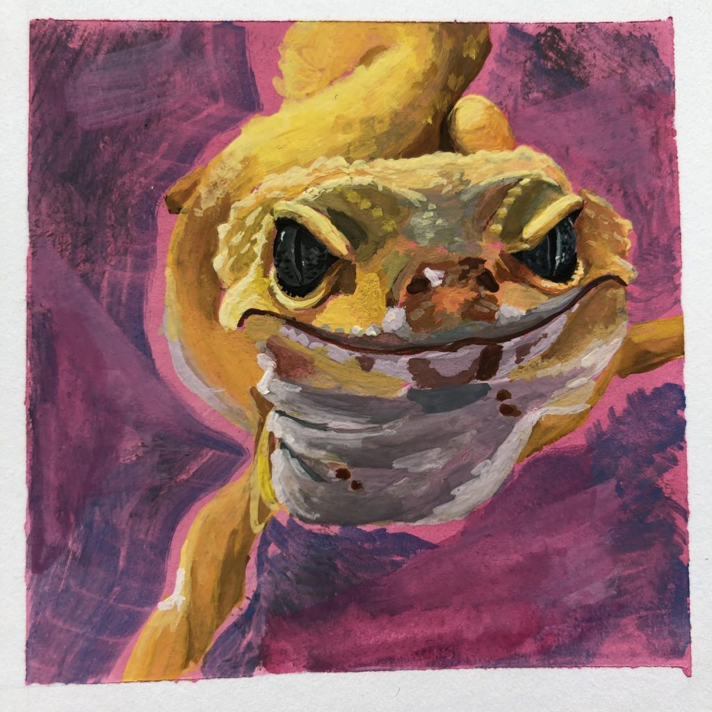 Hey Michelle! Your artwork is so striking and colorful! I adore the leopard gecko piece, I have a gecko named Nova! I’m an astrology lover (and a Scorpio) and I get along with nearly every Pisces i’ve met haha! Welcome to the class 🙂