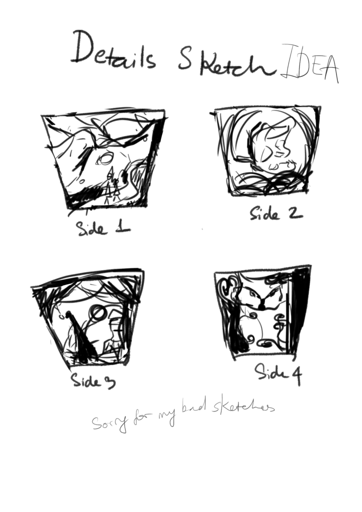 Wow Leona! Really cool lamp pole idea especially with the idea to have cley vines falling around it! For your four side designs, if I am correct that black is the cut out areas and white is what will be left wood, I am wondering how you plan to attach all the pieces that do not connect to the sides?