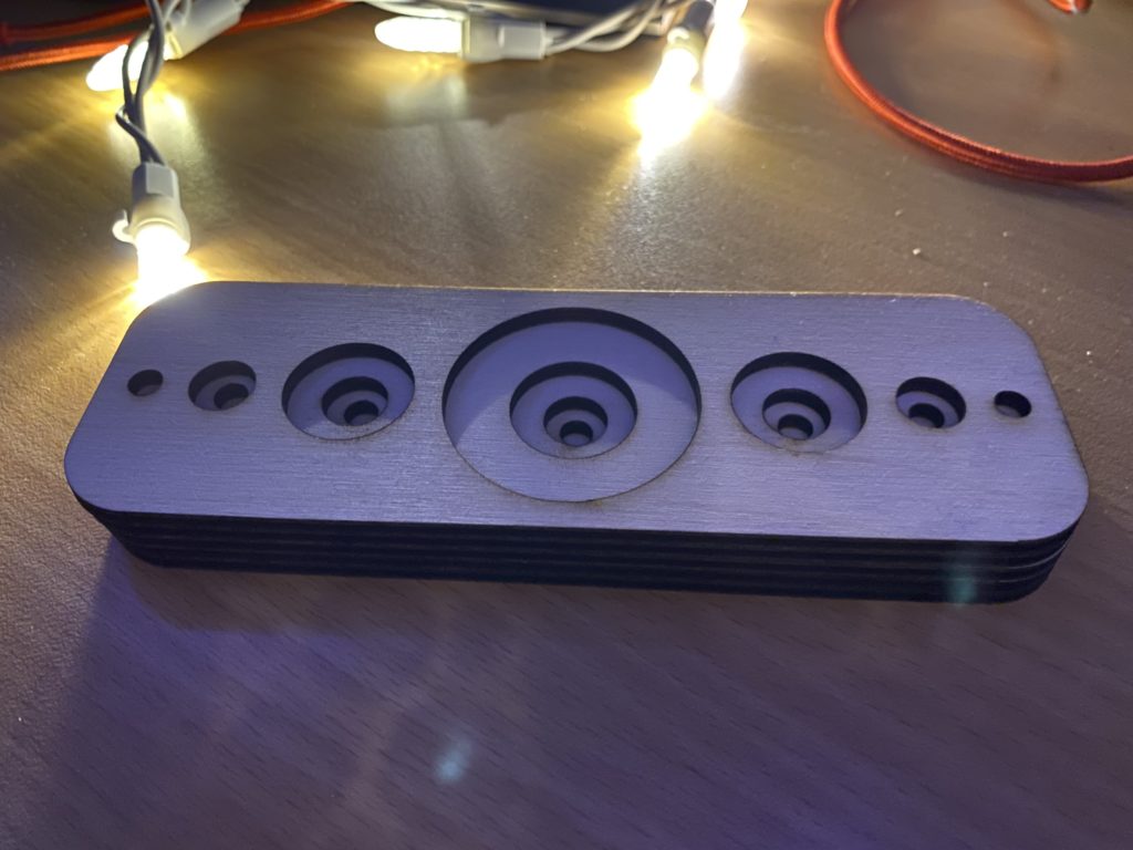I changed my initial layers cut design. This draft has 5 layers and is pretty small. I plan to engrave circles or flowy lines onto each layers and make the whole thing bigger. Thoughts on using acrylic? Also did we figure out the best way to assemble acrylic layers?