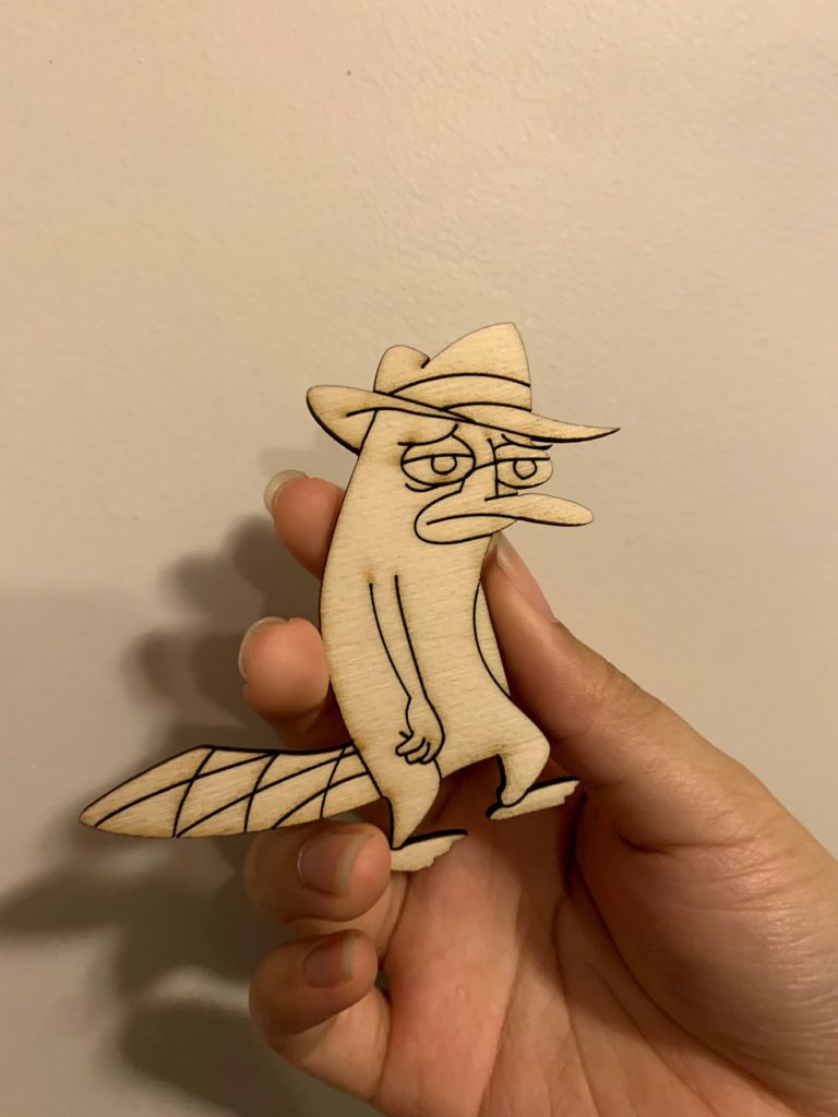 So far I’ve only cut out my Perry the Platypus drawing. I really like how it came out, the only thing I would’ve changed is putting a whole in it to make it a keychain.