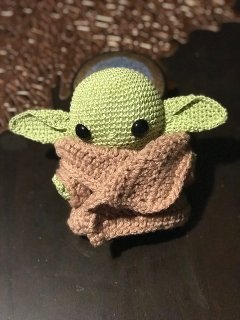 Hi! I’m giving you the cute badge because of how adorable and accurate your crocheted little baby yoda is!