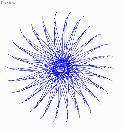 This is the code I used in case anyone wanted to play around with the design. Changing the angle and value a both had big effects on the outcome.