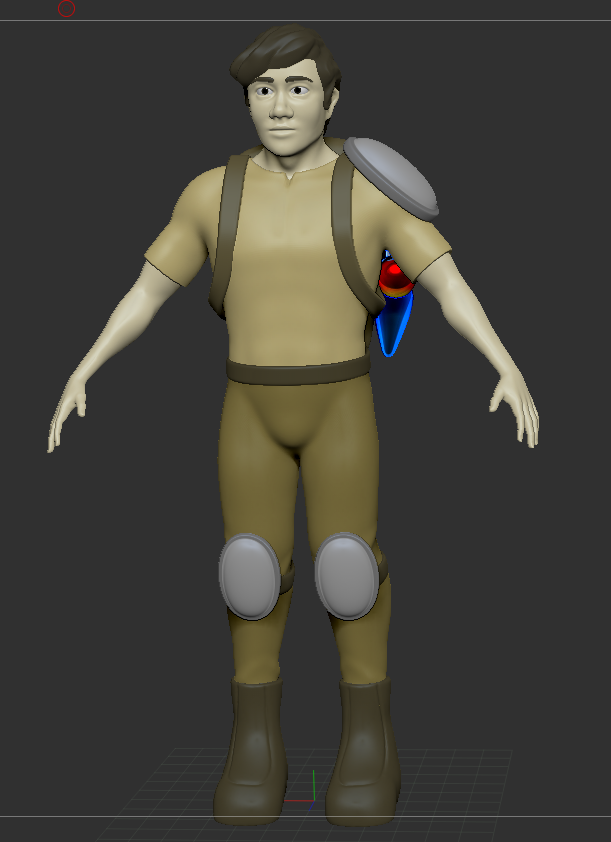 I did the main modeling in ZBrush, and I also used the poly paint feature to do the texturing. The big mistake I made with this was not making a serious piece of concept art. I had a very tiny rough sketch of my character on my original concept sketch for the overall project, and I based most of my modeling off of that. This ended up being really difficult, and retrospectively I realized that his design would have benefitted greatly from a more formal concept piece. In the end the character ended up being a lot more bland than I would have hoped because of this. However, I’m still pretty happy with how parts of him turned out.