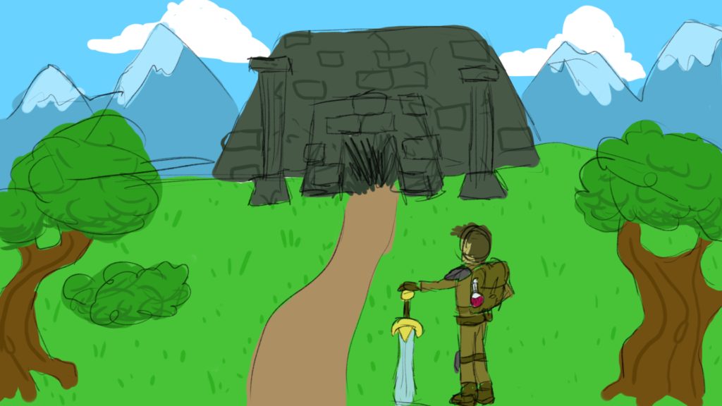 As I’ve started getting more and more into D&D this past term, it’s been on my mind frequently, and I can’t think of any game ideas outside of that theme so I’m going to run with it. My game will be an action/adventure fantasy game, where the play controls a warrior on a quest to find treasure and kill some monsters. They will start in a pleasant forested area near the mouth of a dungeon. After defeating a pack of goblins on the surface, the player will venture down into the dungeon, where they will advance through a few rooms, fighting more goblins and ultimately facing off with the goblin chief. After defeating him, they can open a treasure chest to reveal a shiny new magical sword.
