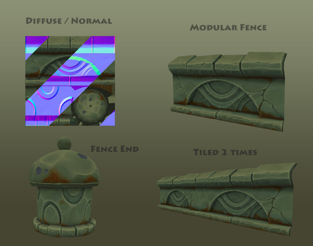 The characters that would need to be created for this game include the player character, one regular goblin, and one boss goblin. The main hero assets that need to be modeled in greater detail are the player’s weapon, the treasure chest at the end, and the new weapon earned as a reward. Since the environment consists of two main areas, the forest and the dungeon, different sets of assets would be needed for each section. The forest would need a couple types of trees, shrubs, grass, bits of debris like fallen logs, and a skybox with some faraway clouds and mountains. The dungeon would need brick walls, stone pillars, iron bars, and torch sconces. Overall the look of the game will be between realistic and stylized, with very saturated, bright colors and slightly cartoony shapes on the models. The visual style will take semi-realistic materials and paint over them with bolder, flatter colors. This will appeal to the target audience, which is kids/teens as well as any fans of stylized fantasy RPGs like Legend of Zelda or World of Warcraft.