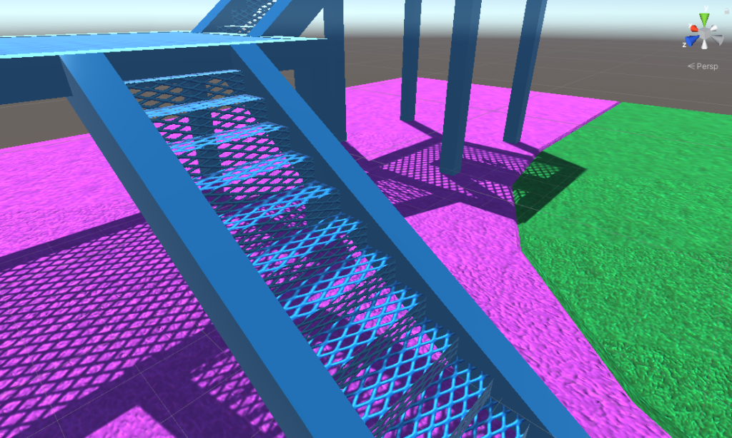 I tried way too hard to be clever with the stairs, and it ended up being a waste of time and energy. Moving forward, I will NOT try to assemble staircases out of individual parts, I’ll just make the whole thing one model. It might not be modular design, but it saves a lot of headaches. I decided against this partially because I wanted to use cut-out planes for the steps, and partially because I was too stubborn to make new stairs after I finished building them the first time. In any case, future staircases will be fully modeled before coming to Unity.