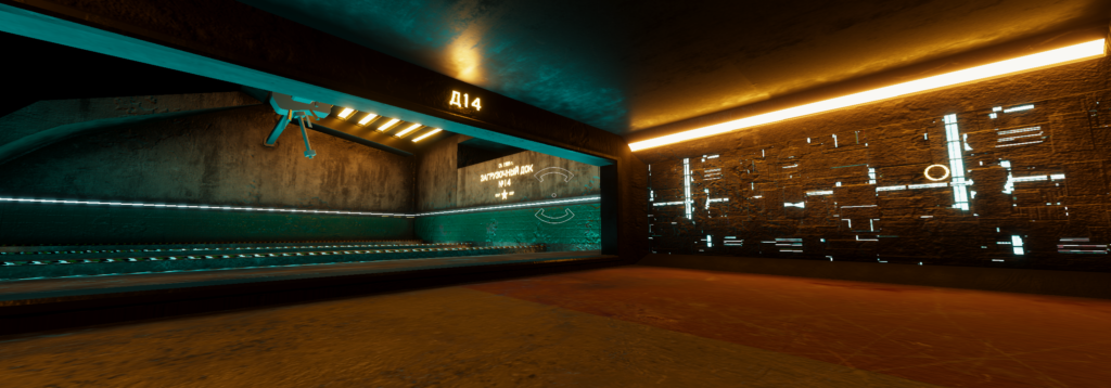 I’m trying to get the feeling of Sovietpunk as well as possible. So there exists a lot of cyberpunk-esc Russian scattered around! I even got a friend from Russia to do voicelines for a eerie PA system! I’ll figure out how to do that when I implement sounds.