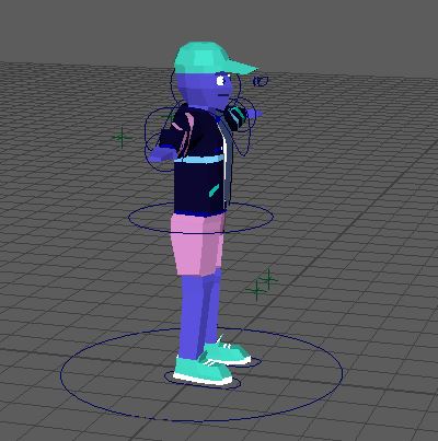 For the character animations, I rigged the entire character from scratch. This included making IK controllers for their arms and legs, along with their respective pole vectors. Additionally, I made controllers for the hip, chest, and neck areas, along with controllers for the eyes. The skinning for the rig proved to be the most difficult part of the rigging process, for my weaker skills in 3D modelling began to punish me for my questionable edge loops. Because of this, I had to adjust the geometry of the character many times.