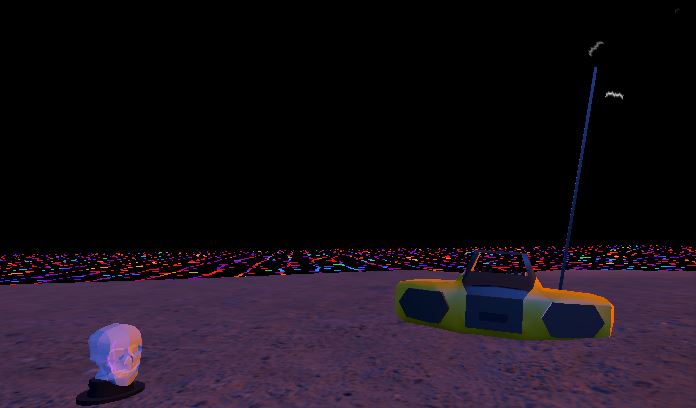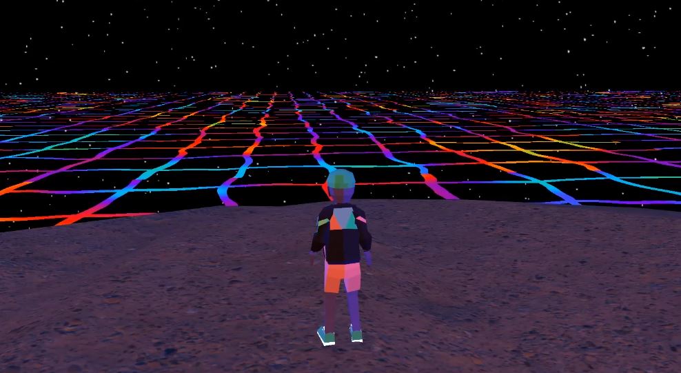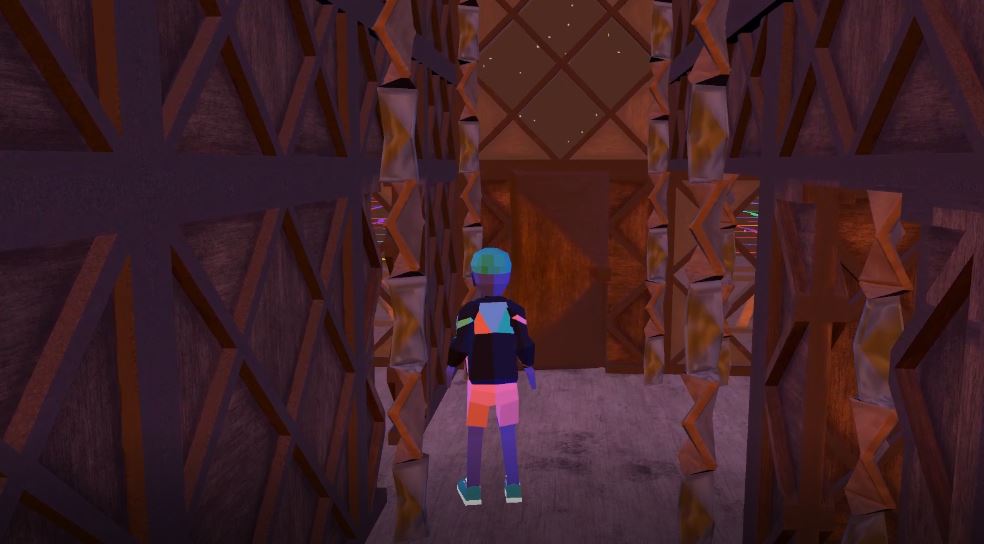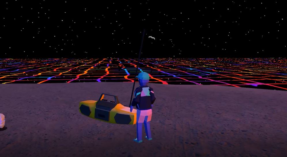 Concept: You have crash-landed on the outskirts of the universe while riding the radiowaves with your yellow boombox. Luckily, you have found a welcoming ranch owner named Joey on the desolate undulating plane of colorful existence. Enter Joey’s home (with permission, of course) and search for two batteries and a magical bottle of liquid in order to repair your radio vessel.